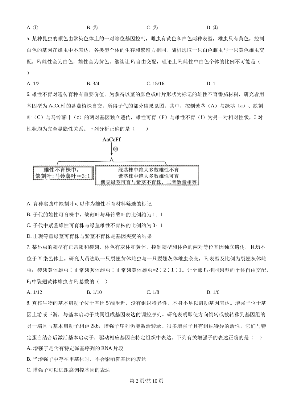 湖北省华中师范大学第一附属中学2024-2025学年高三上学期10月月度检测生物试卷(原卷版).docx_第2页
