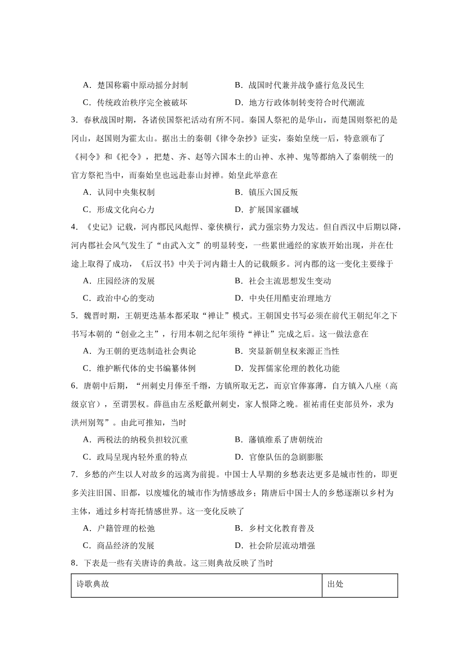湖北省宜城市第一中学2024-2025学年高三上学期9月月考历史试卷含答案.docx_第2页