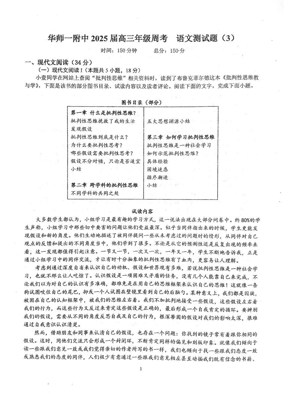 华中师范大学第一附属中学2024-2025学年高三上学期十月月度检测语文试卷.pdf
