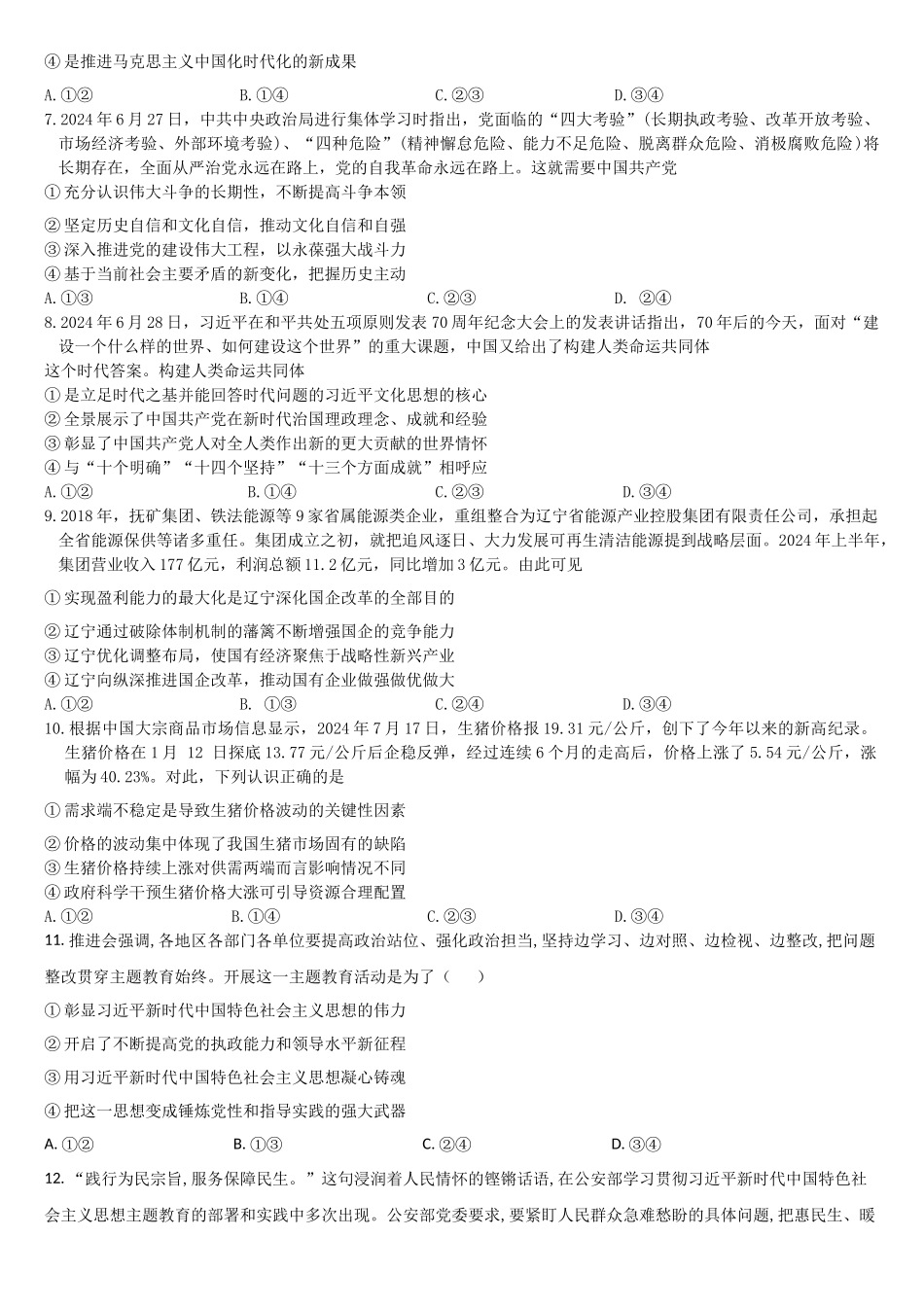 吉林省通化市梅河口市第五中学2024-2025学年高三上学期10月月考试题 政治含答案.docx_第2页