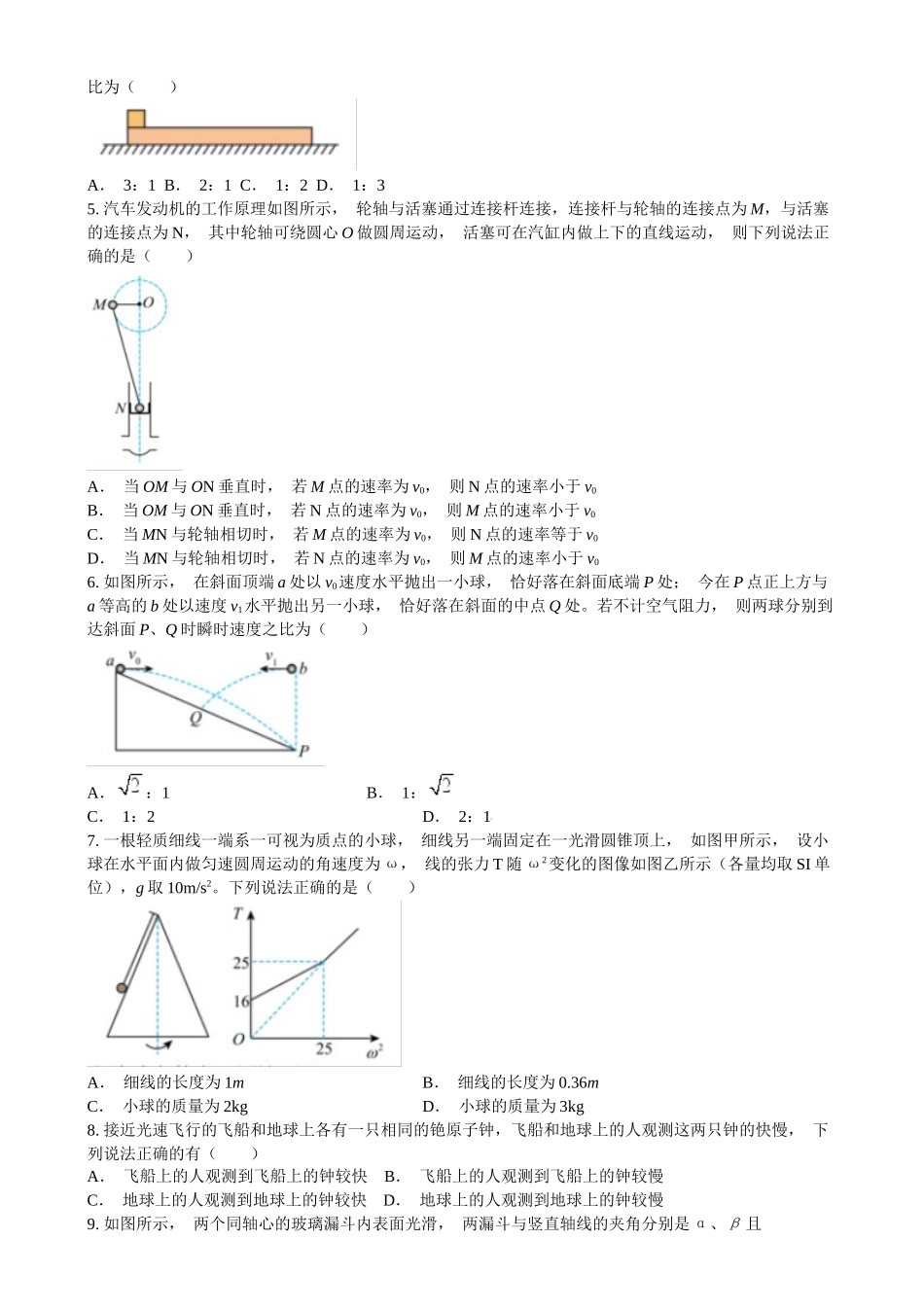辽宁省实验中学2024-2025学年高三上学期10月月考物理试卷(含答案).docx_第2页