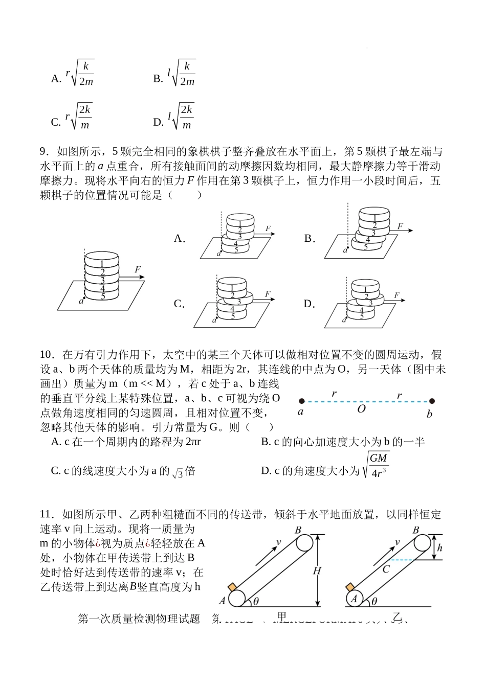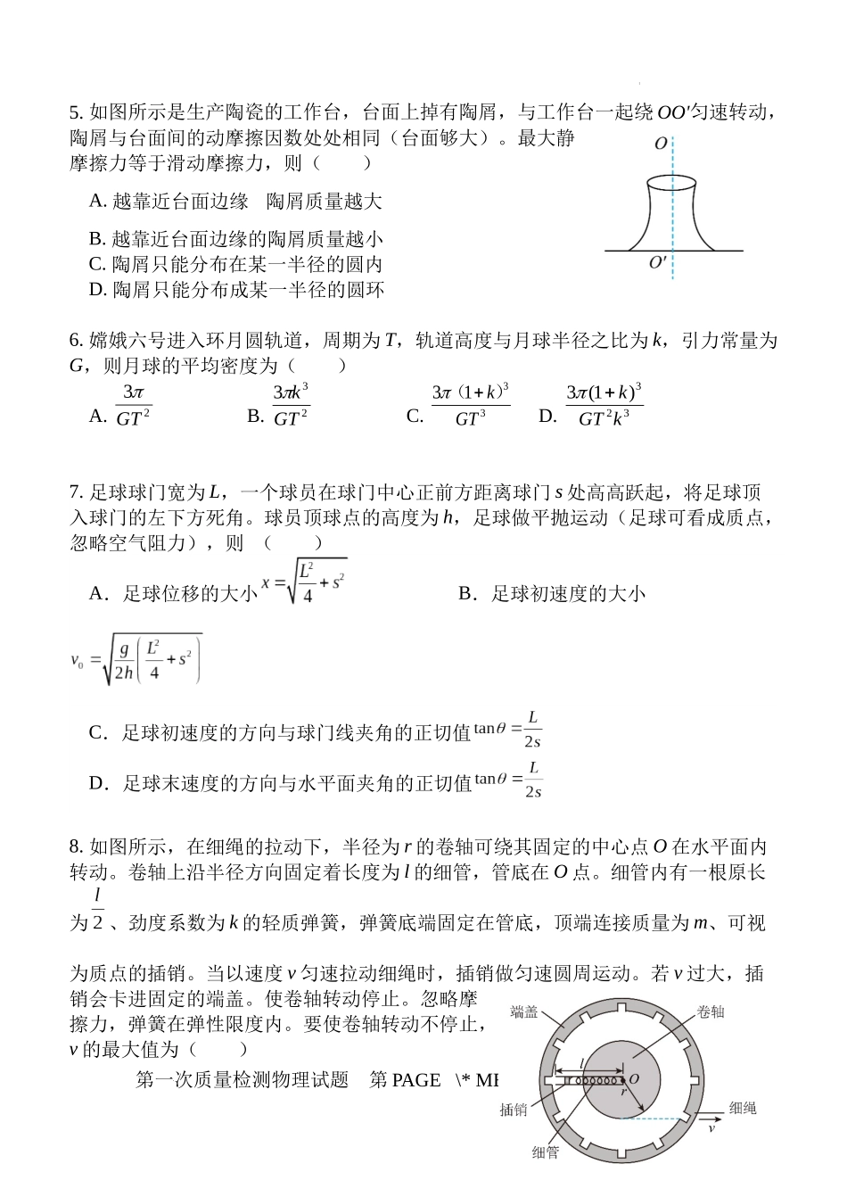 一、选择题(共12小题,1-8题为单选,每题3分,9-12题为多选,每题6分,共48分)1.篮球比赛前,常通过观察篮球从一定高度由静止下落后的反弹情况判断篮球的弹性。某同学拍摄了该过程,并得出了篮球运动的图像,...
