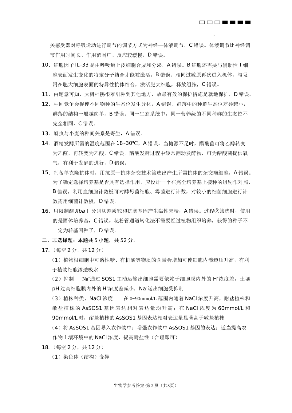 云南省云南师范大学附属中学2024-2025学年高考适应性月考卷(五)生物学答案.docx_第3页