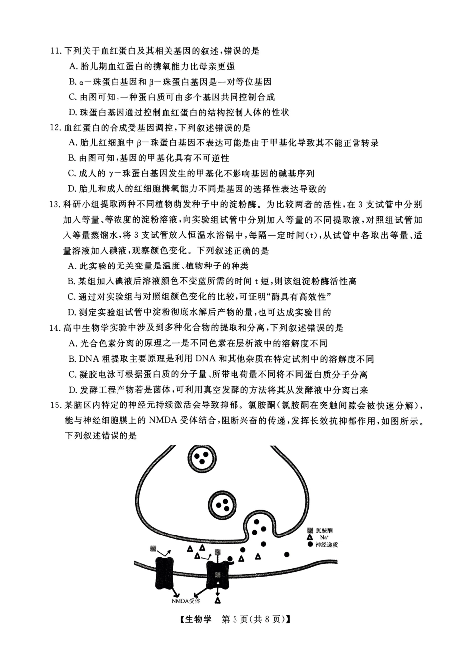 浙江省强基联盟2024-2025学年高三上学期10月联考生物试题含答案.pdf_第3页