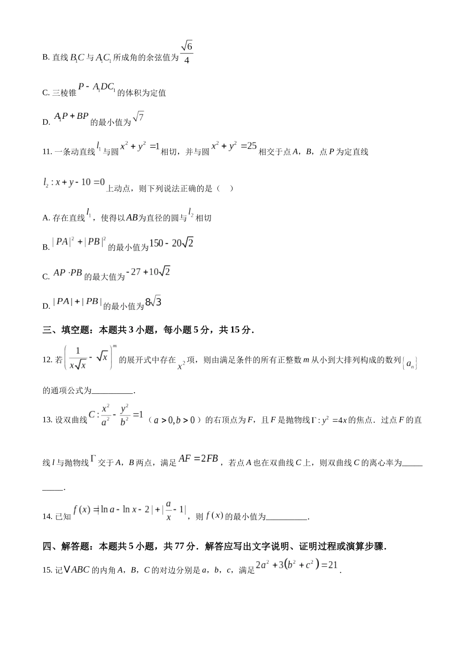 中学生标准学术能力诊断性测试2024-2025学年高三上学期10月测试数学试卷.docx_第3页