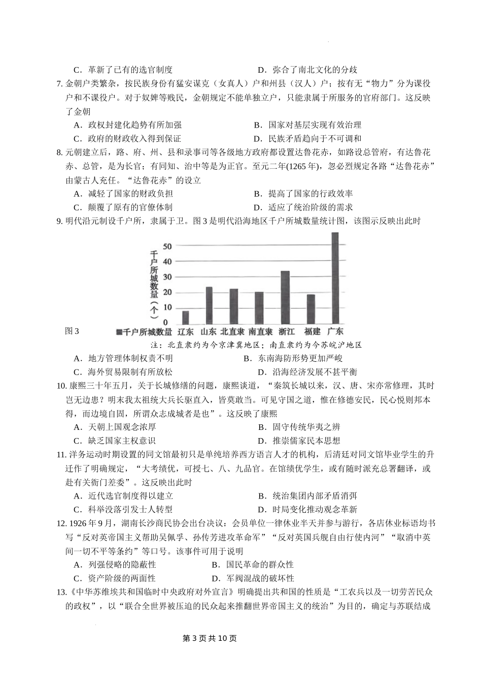 重庆市拔尖强基联盟2024-2025学年高三上学期10月联考历史试题含答案.docx_第3页