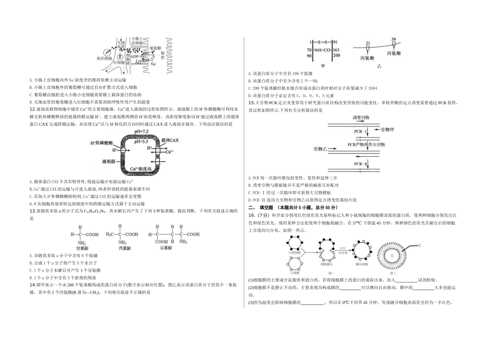 重庆市涪陵五中高2025届2024年上期开学考试生物试题(考试总分:100分考试时长:90分钟)一、单选题(本题共计15小题,总分45分)1.生命系统存在着从细胞到生物圈各个不同的结构层次,以下有关叙述错误的是A.病毒...
