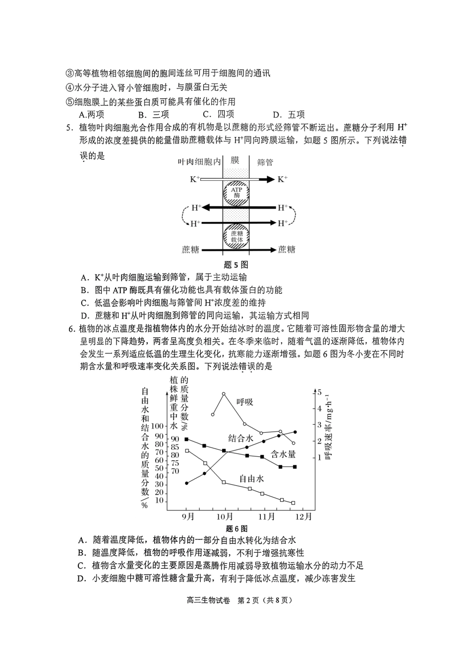 重庆主城五区2025届高三期中考试生物试题含答案.pdf_第2页