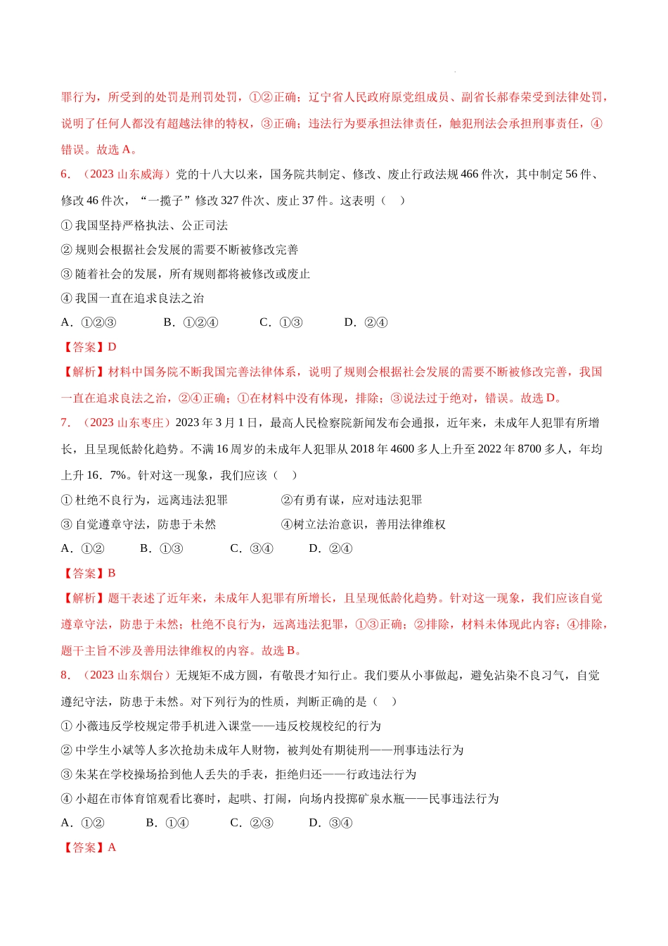专题10 遵守社会规则(考点通关)(解析版)-备战2024年中考道德与法治一轮复习(全国通用).docx_第3页