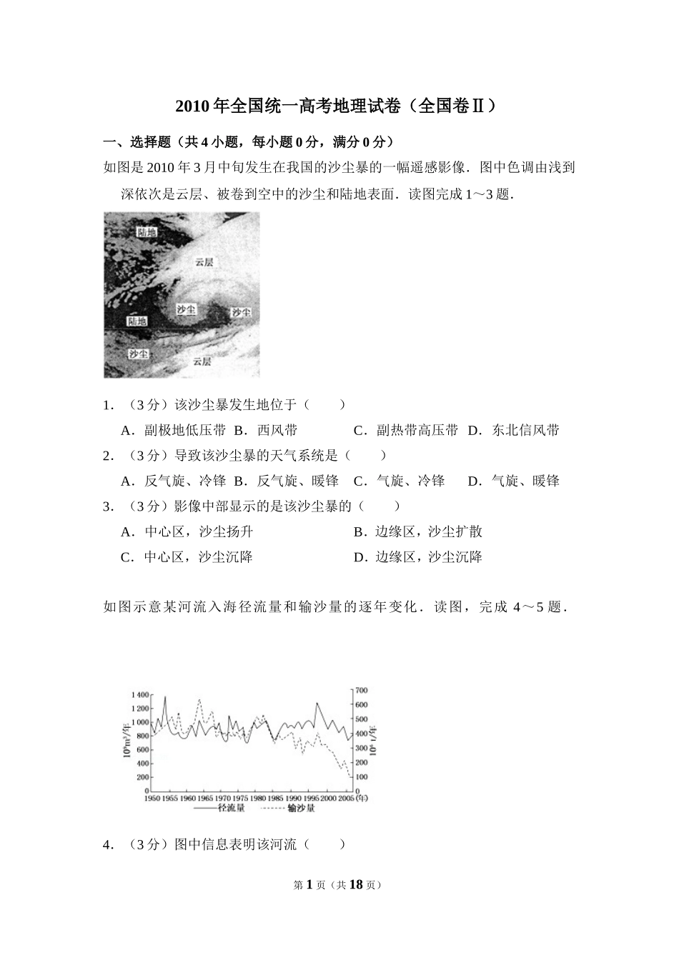 2010年全国统一高考地理试卷(全国卷ⅱ)(含解析版).doc_第1页