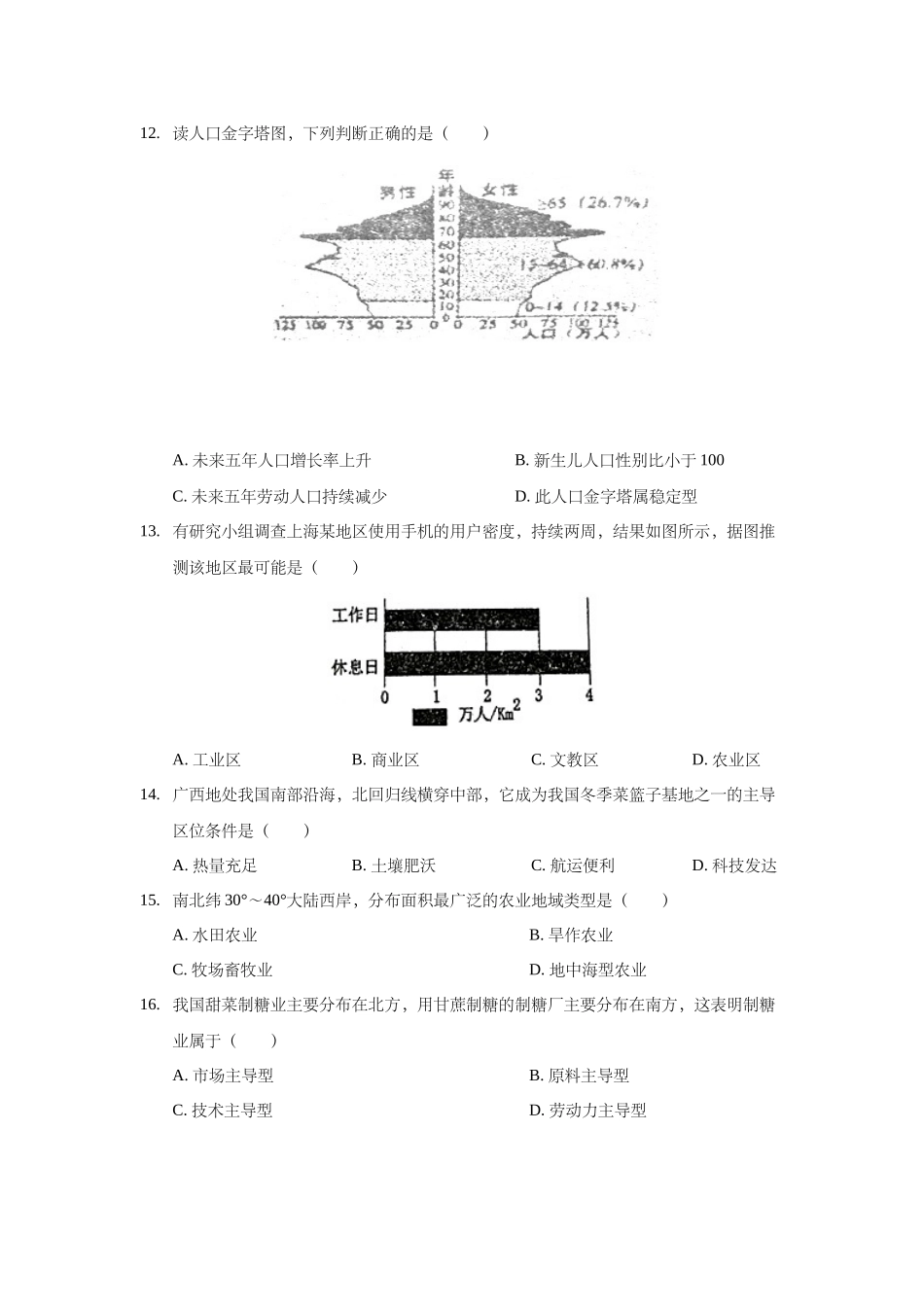 2018年上海市普通高中学业水平等级性考试地理试卷考生注意:1.试卷满分100分,考试时间60分钟。2.本考试分设试卷和答题纸。试卷包括两部分,第一部分为选择题,第二部分为综合分析题,所有试题均为简答题。3.答题...