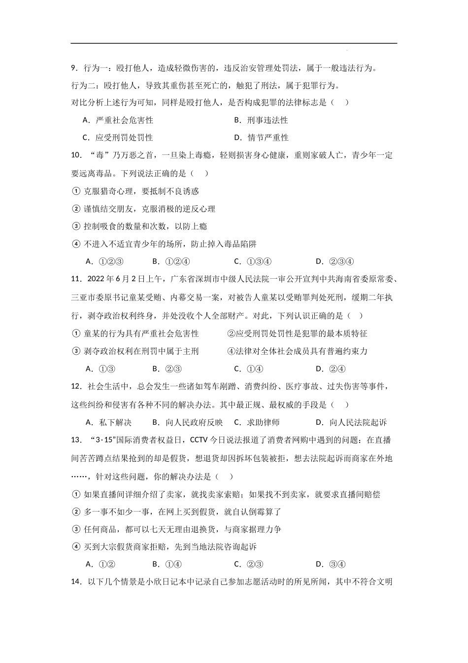 第二单元  遵守社会规则【单元测试提升卷】-八年级道德与法治上册单元精讲速记巧练(部编版)(学生版).docx_第3页