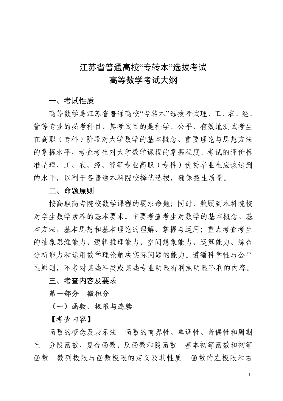 江苏省普通高校“专转本”选拔考试 高等数学考试大纲.pdf