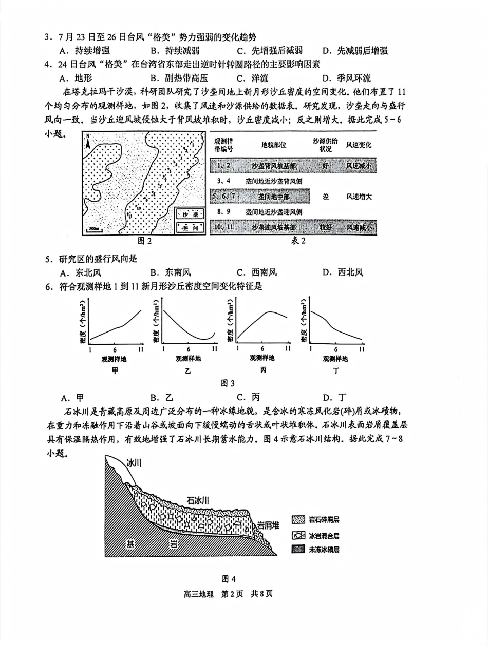 江苏省苏州市2024-2025学年高三上学期11月期中调研地理含答案.pdf_第3页