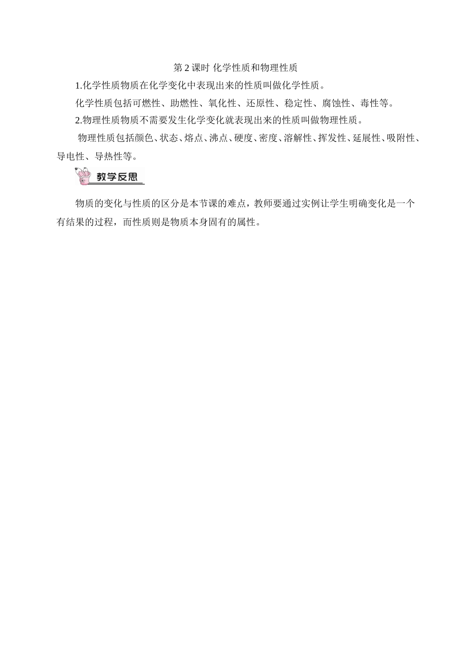 九年级化学上册(创业作业)第一单元 走进化学世界 第2课时 化学性质和物理性质(教案).doc_第2页