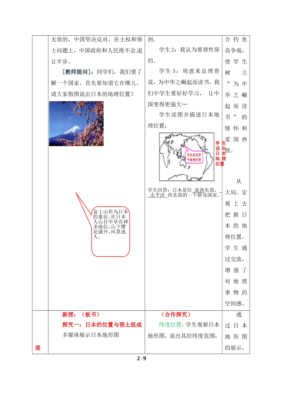 七年级 下学期 地理 商务星球版《日本》参考教案(第1课时).doc_第2页