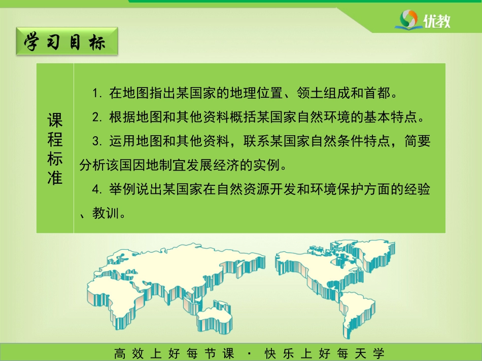 高效上好每节课·快乐上好每天学第八章不同类型的国家第四节澳大利亚(第2课时)高效上好每节课·快乐上好每天学课程标准1.在地图指出某国家的地理位置、领土组成和首都。2.根据地图和其他资料概括某国家自然环境...