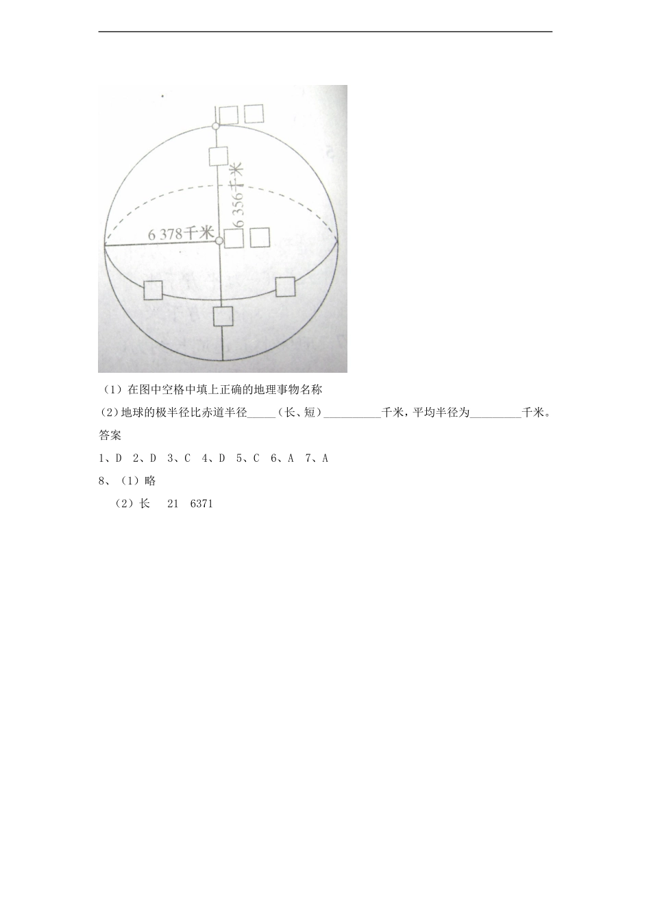 商务星球版地理七年级上册第一单元第1课地球的形状和大小同步测试试卷.doc_第2页