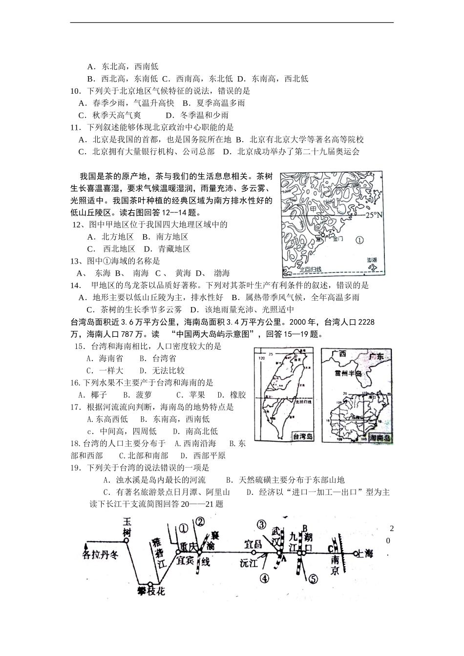 四川省仁寿县龙正学区2016——2017学年第二学期八年级期中教学质量检测 地理试题.doc_第2页