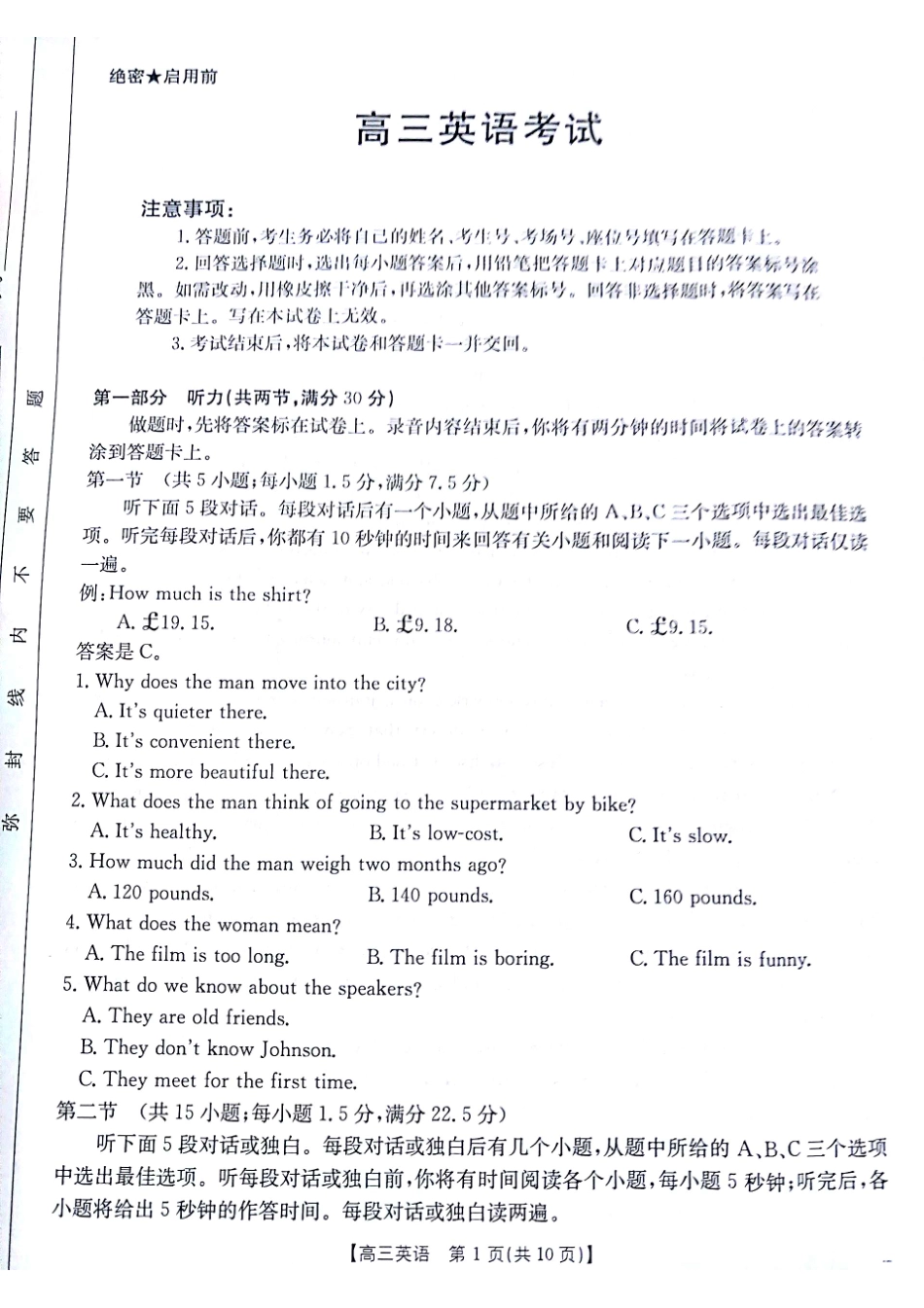 金太阳2025届高三11月期中百万联考2001C(甘青宁)英语试题含答案.pdf_第3页