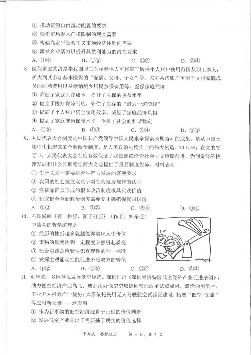 四川省宜宾市2025届高三第一次诊断性考试政治.pdf_第3页