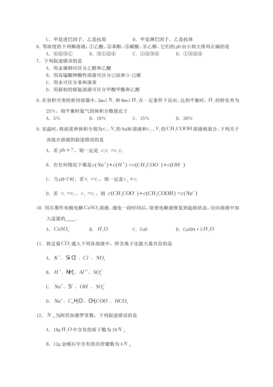 2011年全国卷高考理科综合真题及答案.doc_第2页