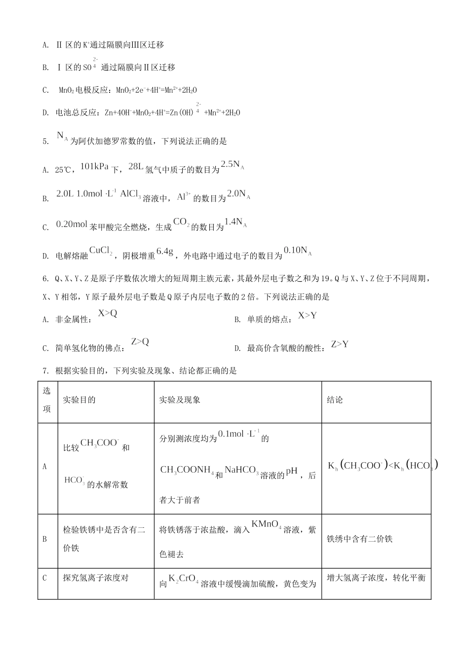 2022年全国甲卷高考化学真题及答案一、选择题1.化学与生活密切相关。下列叙述正确的是A.漂白粉与盐酸可混合使用以提高消毒效果B.温室气体是形成酸雨的主要物质C.棉花、麻和蚕丝均为碳水化合物D.干冰可用在舞台上...