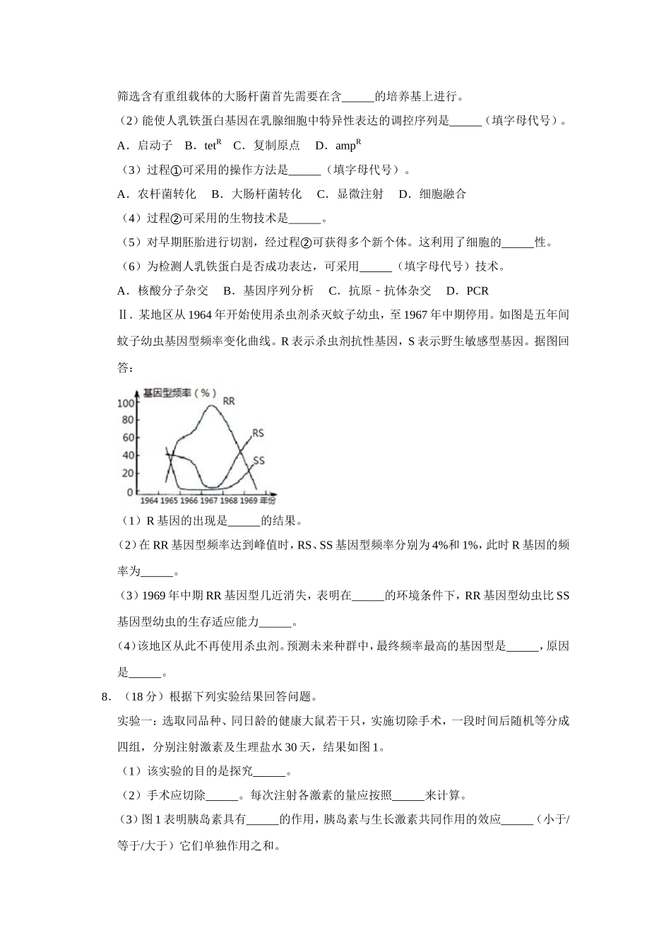 2010年天津市高考生物试卷一、选择题(共6小题,每小题6分,满分36分)1.(6分)在叶肉细胞中,CO2的固定和产生场所分别是()①叶绿体基质②类囊体薄膜③线粒体基质④线粒体内膜.A.①③B.②③C.①④D.②④...