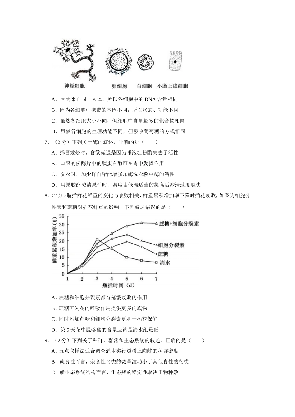 2015年江苏省高考生物试卷一、选择题(共20小题,每小题2分,满分40分)1.(2分)下列关于淀粉、脂肪、蛋白质和核酸4种生物分子的叙述,正确的是()A.都能被相应的酶水解B.都是水溶性物质C.都含C、H、O、N这...