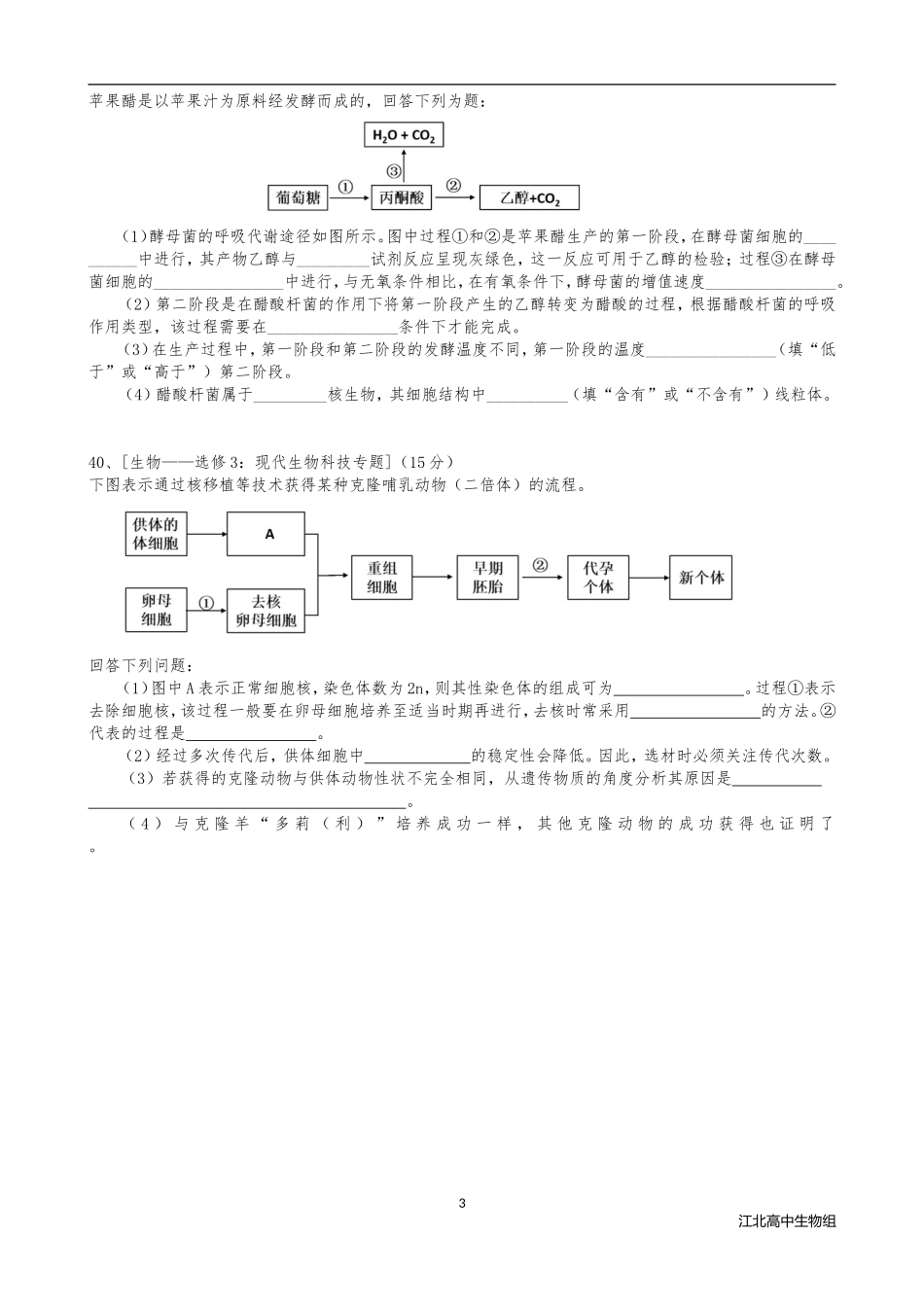 2016年普通高等学校招生全国统一考试【陕西生物真题+答案】.doc_第3页