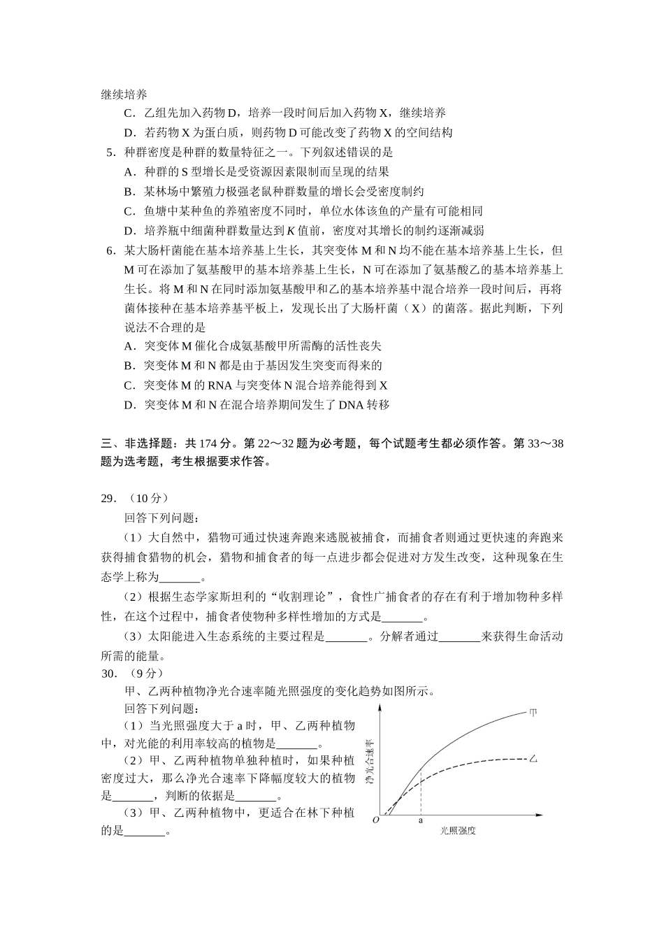 绝密★启用前2018年普通高等学校招生全国统一考试理科综合能力测试注意事项:1.答卷前,考生务必将自己的姓名、准考证号填写在答题卡上。2.回答选择题时,选出每小题答案后,用铅笔把答题卡上对应题目的答案标...