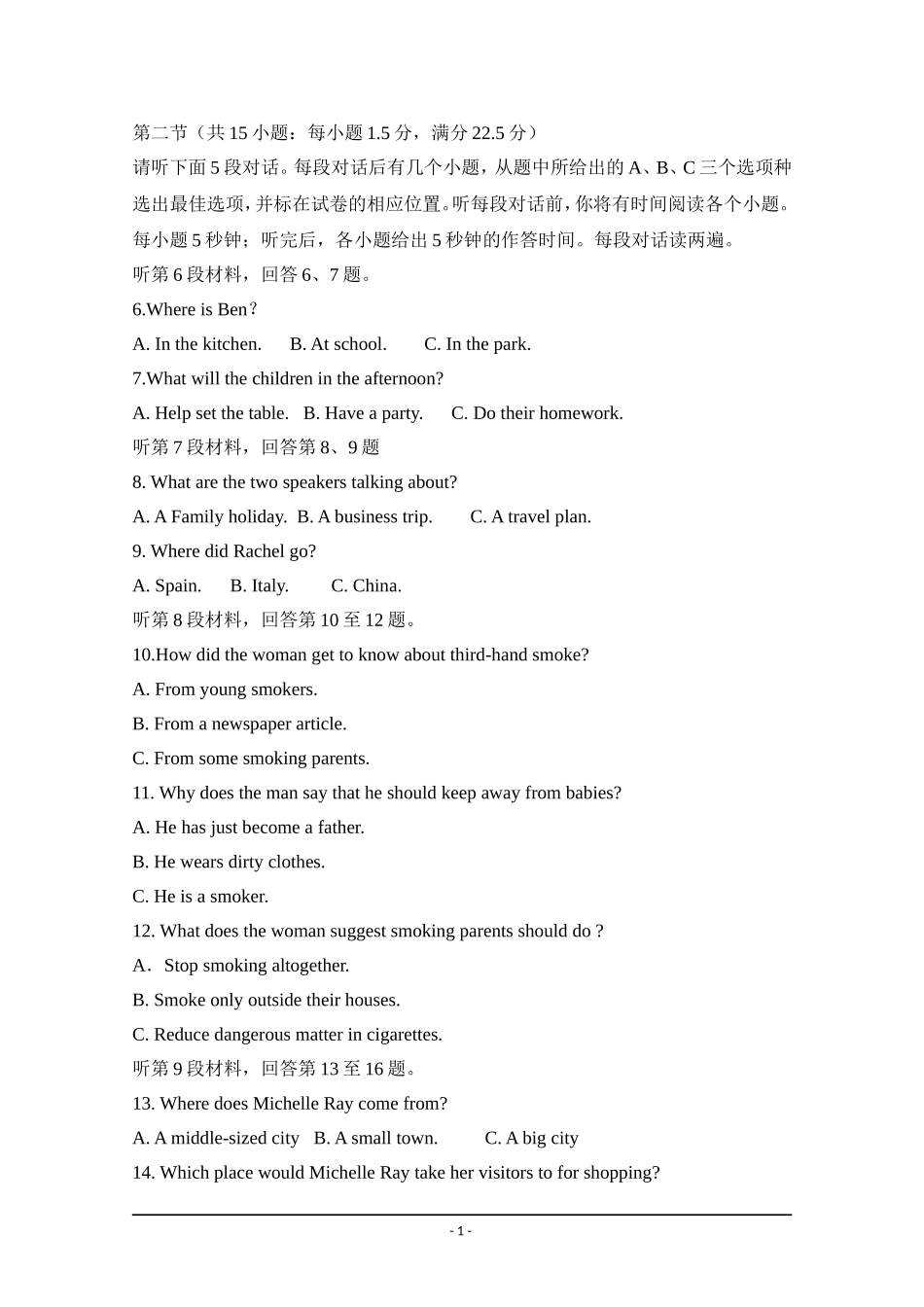 2011年普通高等学校招生全国统一考试英语本试卷分第一卷(选择题)和第二卷(非选择题)两部分。考试结束后,将本试卷和答题卡一并交回。第一卷注意事项:1.答第一卷前,考生务必将自己的姓名、准考证号填写在本...
