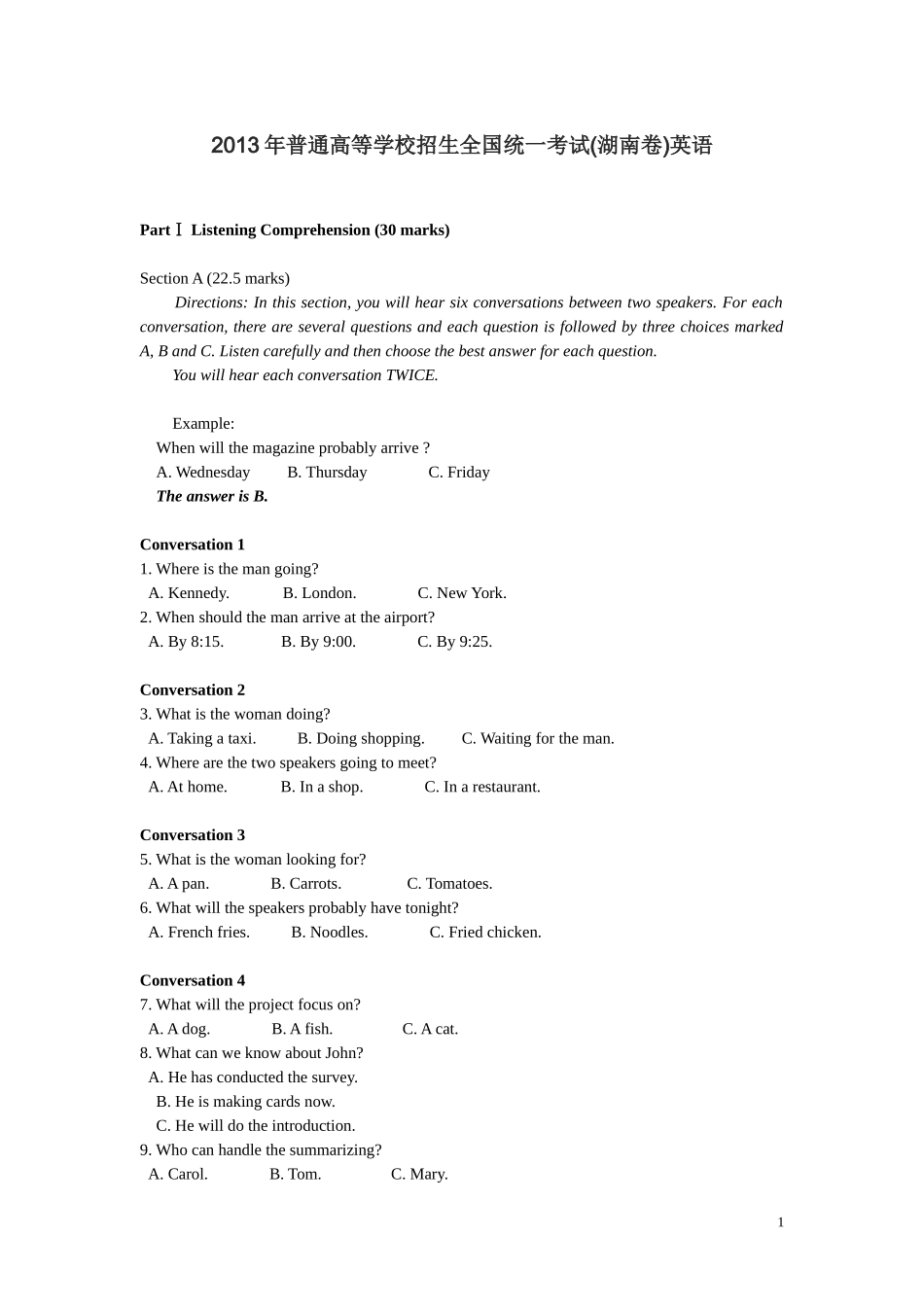2013年高考英语湖南卷答案及试题word版.doc_第1页