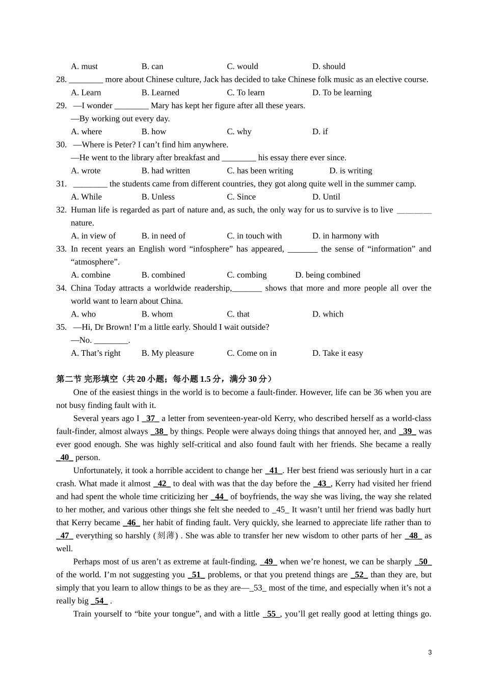 2015年福建高考英语试题及答案.doc_第3页