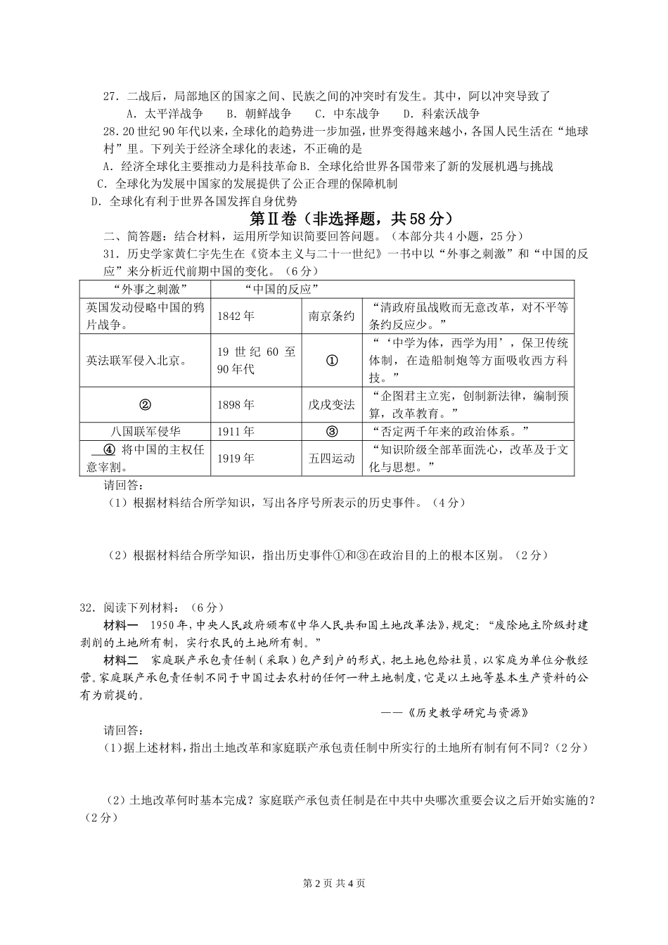 2010年江苏省常州市中考历史试题及答案.doc_第2页