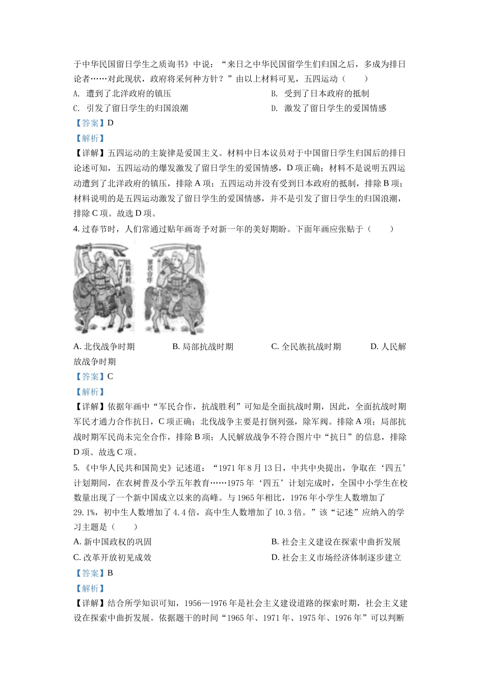 2022年河北省中考历史真题(解析版).docx_第3页