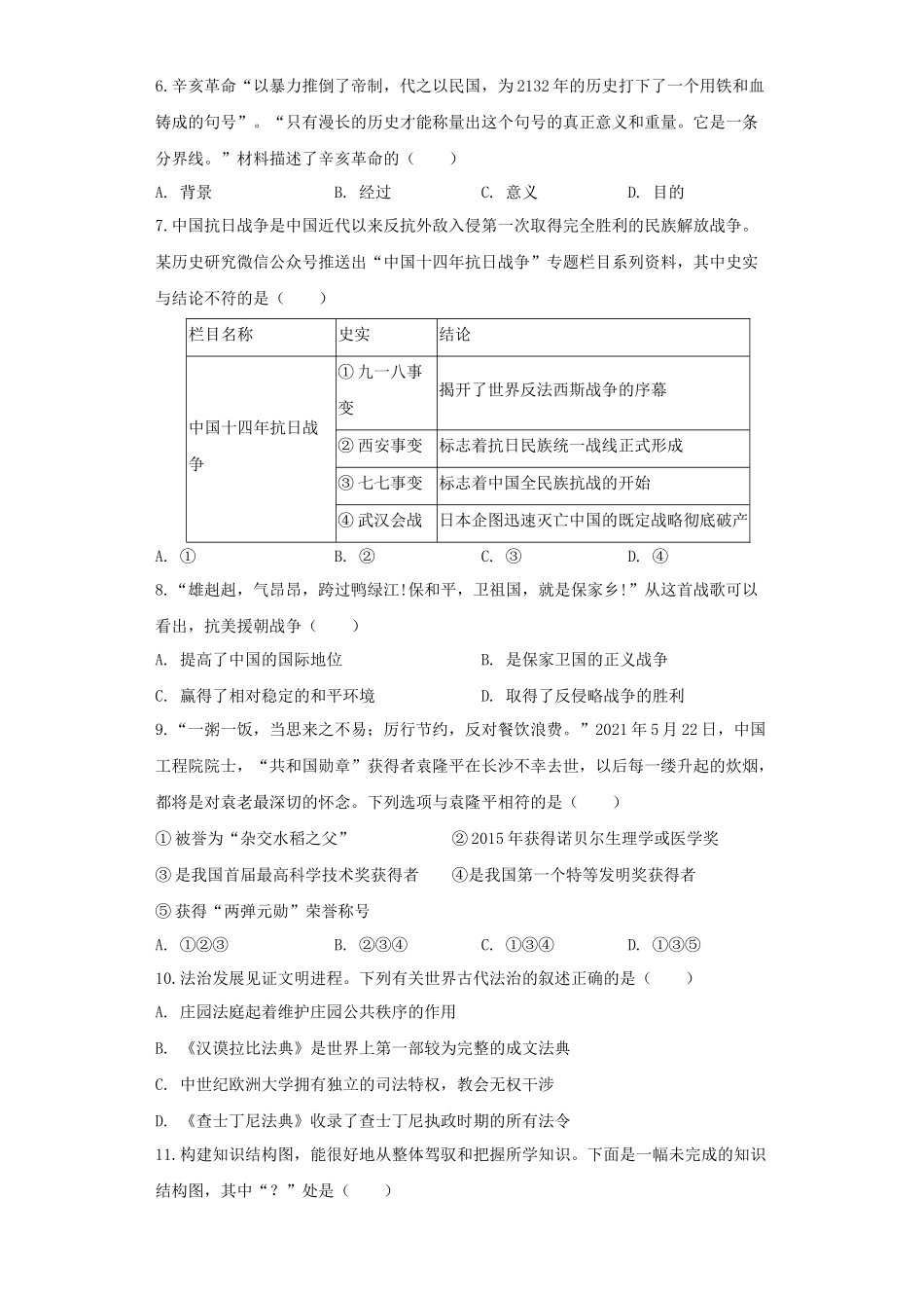 湖北省恩施州2021年中考历史试卷(原卷版).docx_第2页