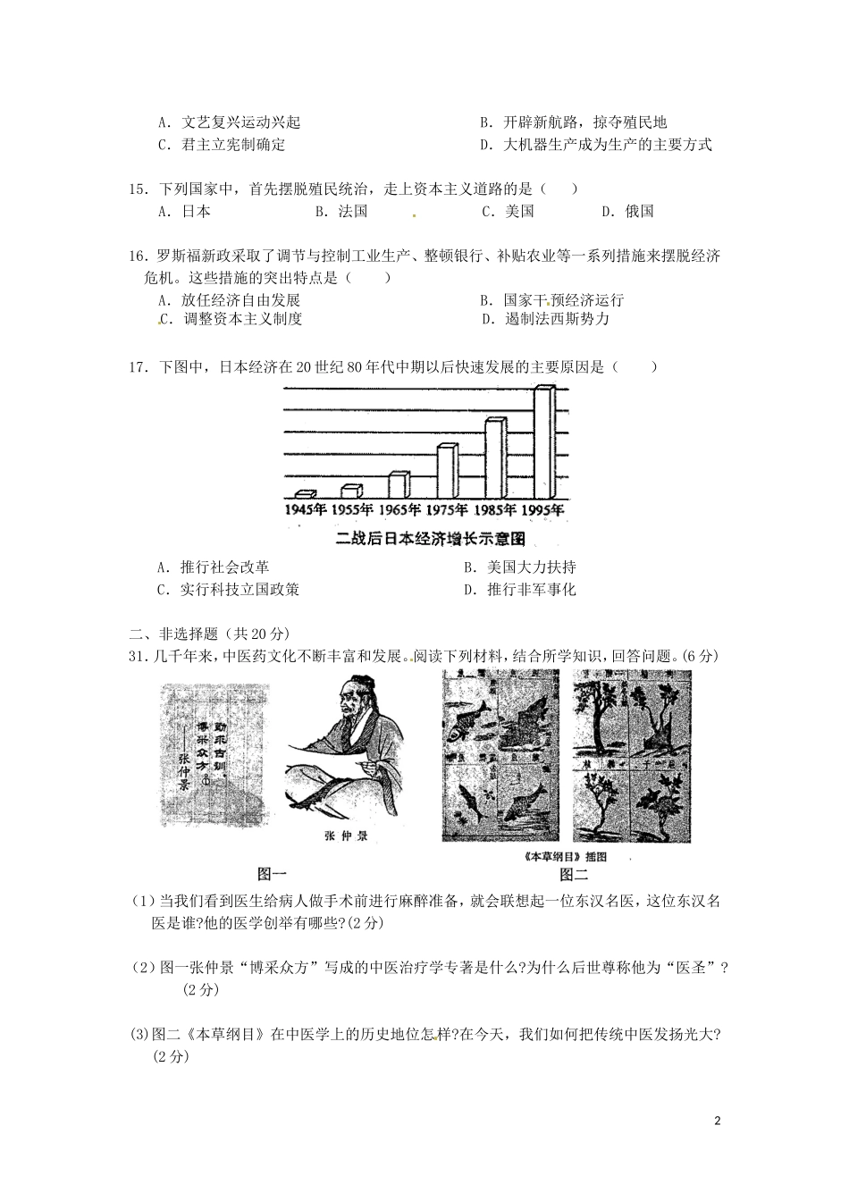 湖北省随州市2016年中考文综(历史部分)真题试题(含答案).doc_第2页