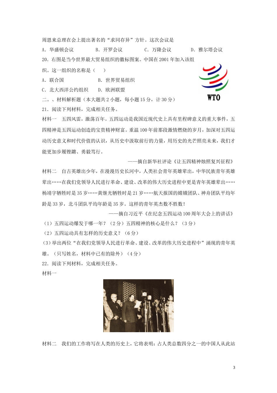 湖北省宜昌市2019年中考历史真题试题.doc_第3页
