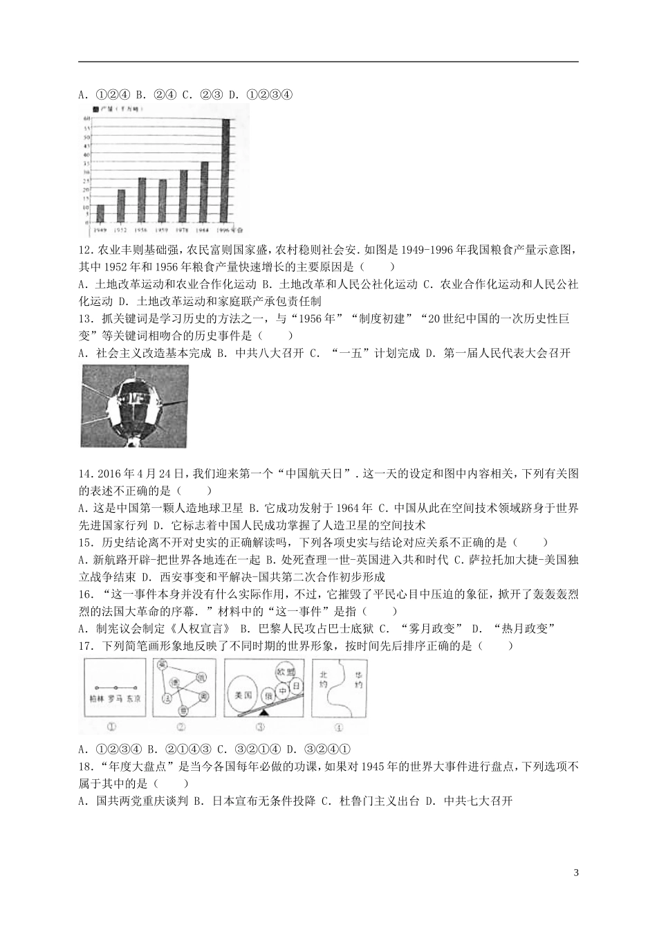 山东省济宁市2016年中考历史真题试题(含解析).doc_第3页