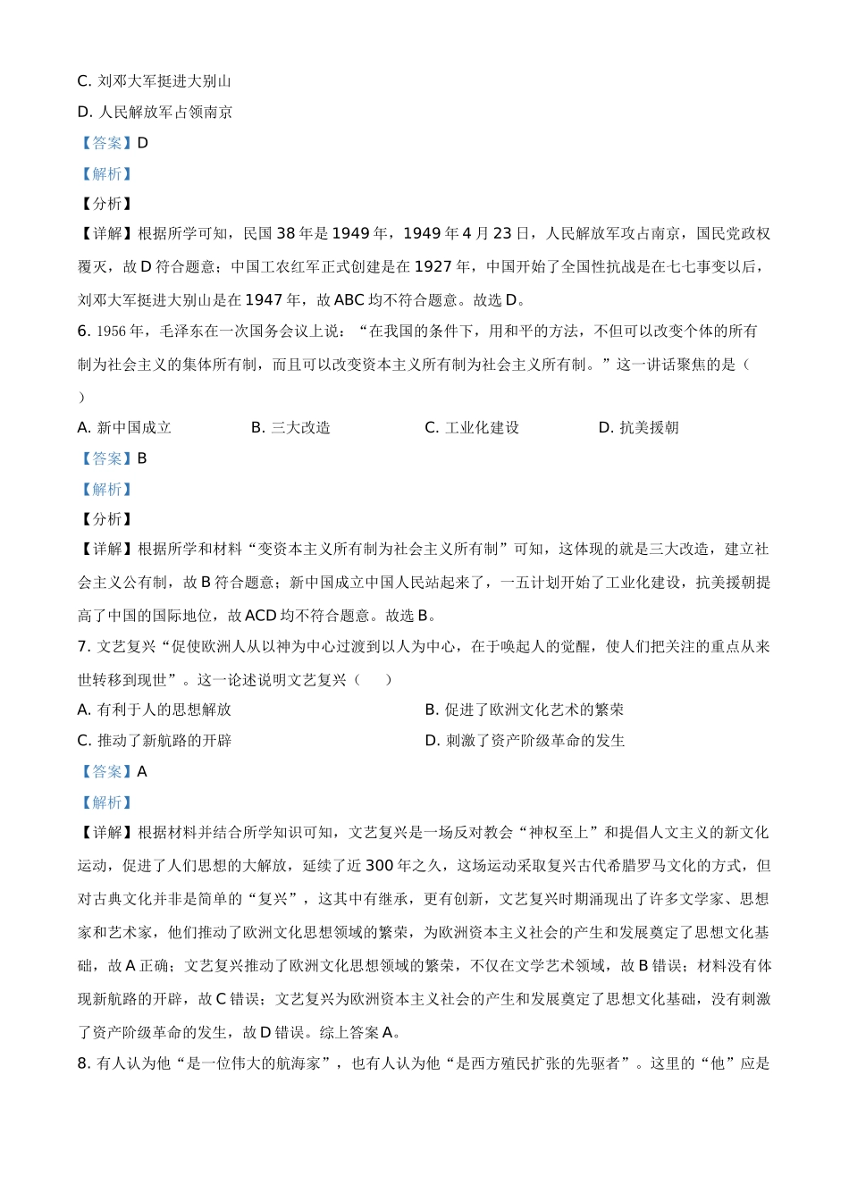 四川省甘孜州2021年中考历史试题(解析版).doc_第3页
