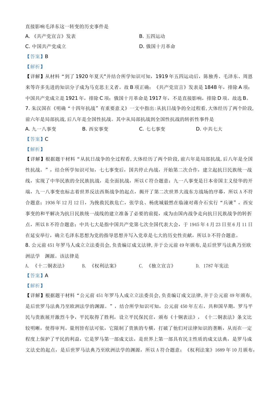 四川省泸州市2021年中考历史试题(解析版).doc_第3页