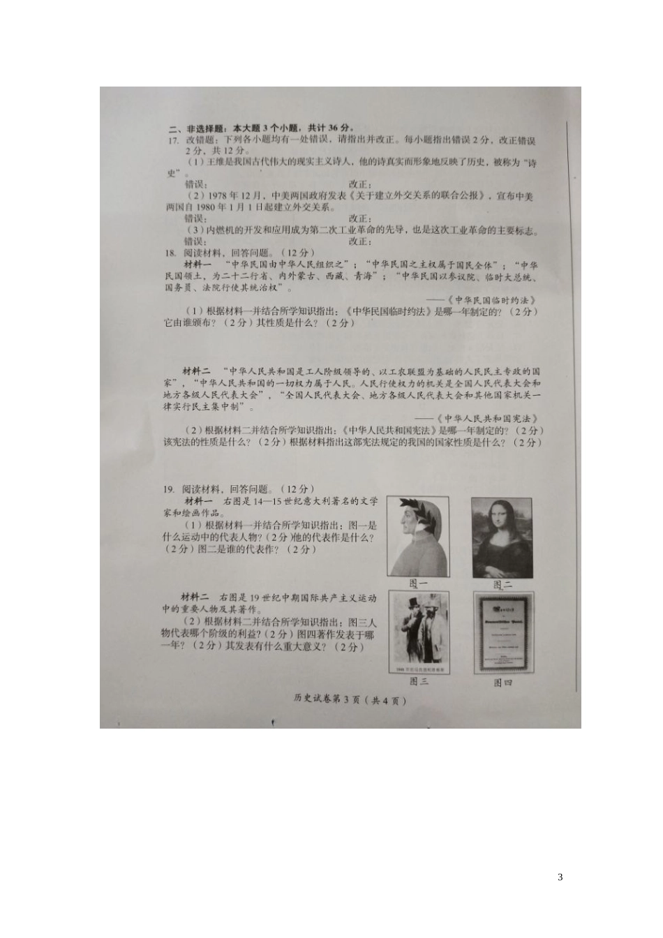 四川省内江市2019年中考历史真题试题(扫描版).doc_第3页