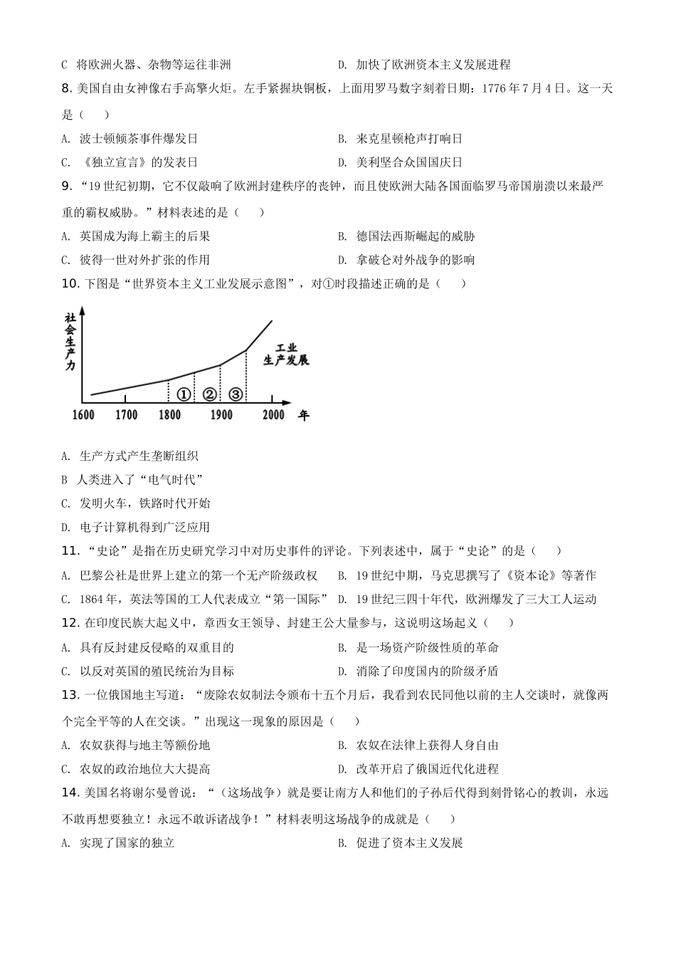 四川省攀枝花市2021年中考历史试题(原卷版).doc_第2页