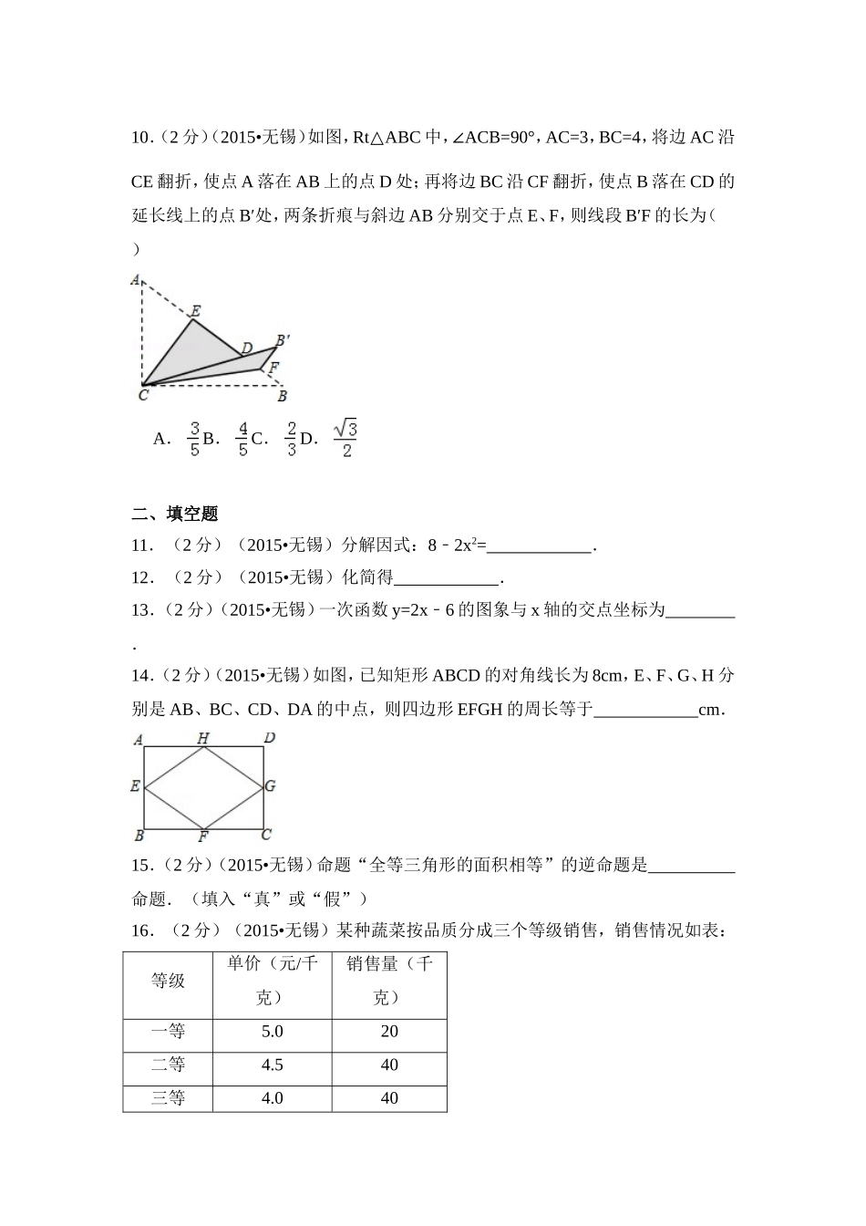 2015年江苏省无锡市中考数学试卷(含解析版).doc_第2页
