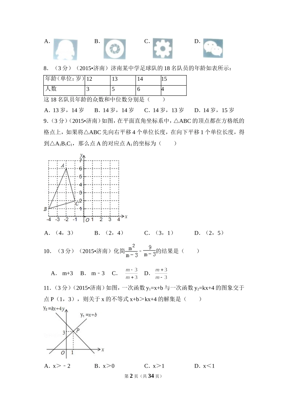 2015年山东省济南市中考数学试卷(含解析版).doc_第2页