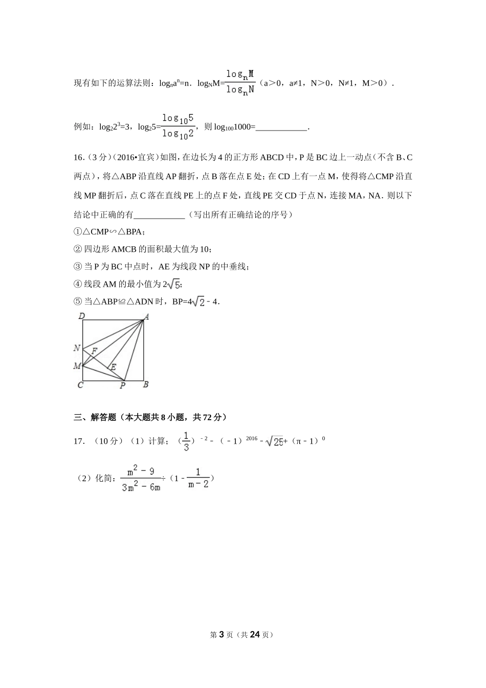 2016年四川省宜宾市中考数学试卷(含解析版).doc_第3页
