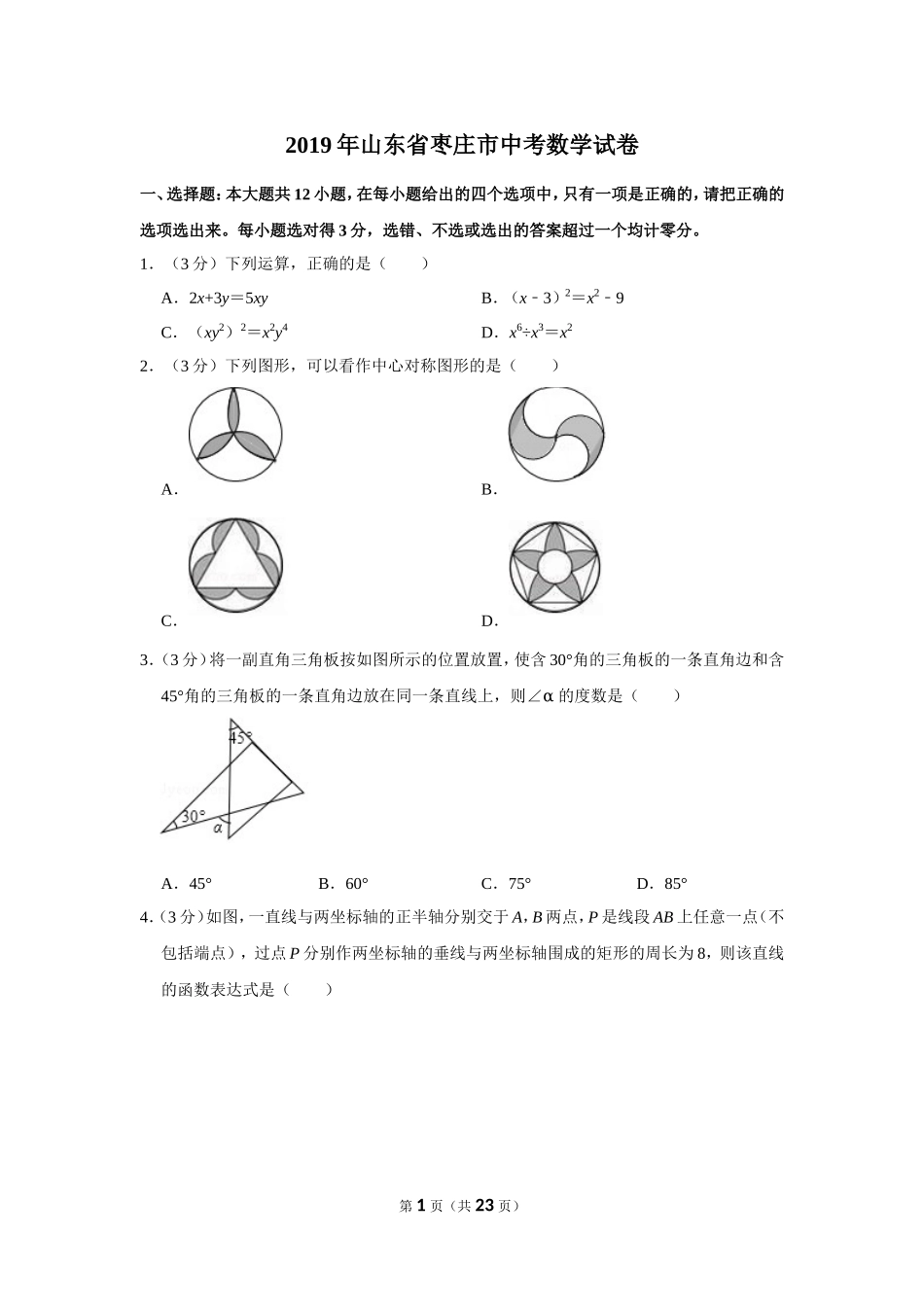 2019年山东省枣庄市中考数学试卷.doc_第1页