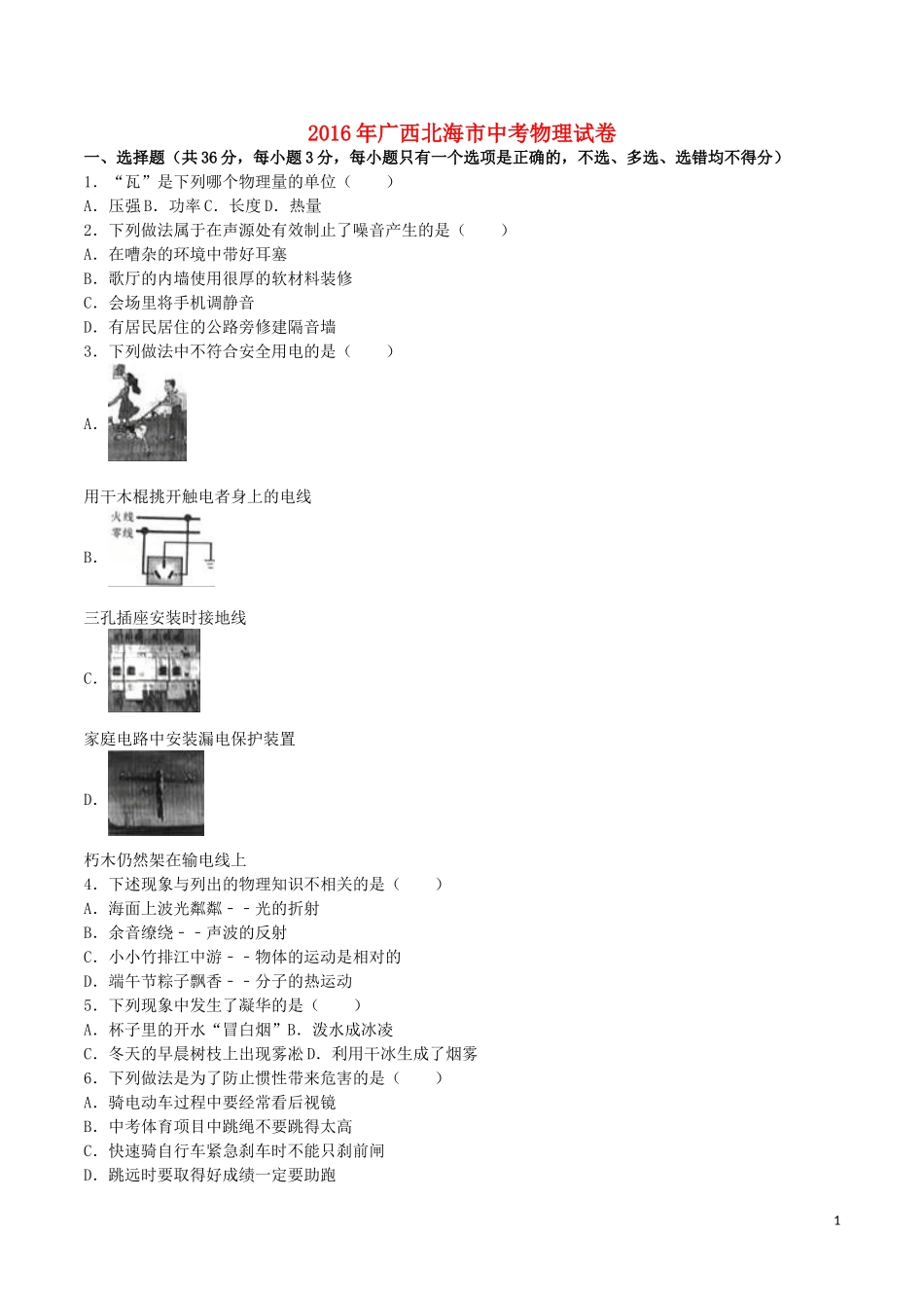 广西北海市2016年中考物理真题试题(含解析).DOC_第1页