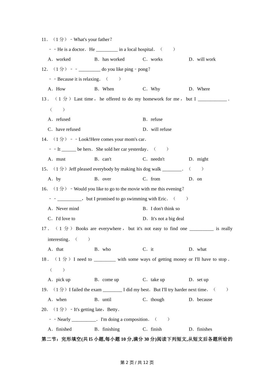 2015年四川省绵阳市中考英语试卷(学生版)  .doc_第2页